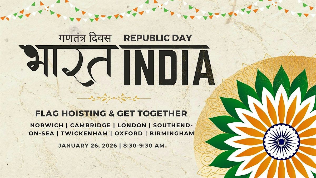 Join us on January 26th, 2026, as we celebrate India's Republic Day right here in the UK. We'll come together to raise the Indian flag and sing to the tunes of the national anthem, followed by a chance to meet and mingle with fellow Indian expats from around the city over free refreshments, chai, and some light snacks.