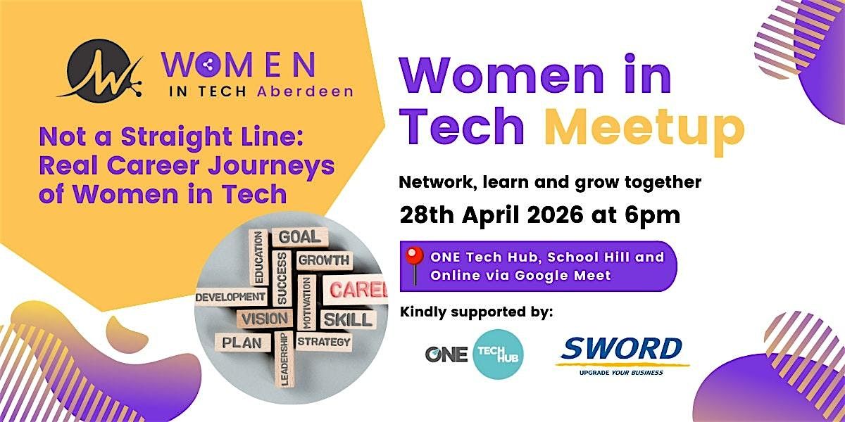 By clicking the button to submit this form, you are consenting to the information you provide being used by Women in Tech Aberdeen to contact you directly in relation to this event and future events. We will share your information with the venue to allow more efficient registration when you arrive. Please note that photographs and footage may be taken throughout the event. These may be used by Women in Tech Aberdeen for marketing, on our website and in social media.