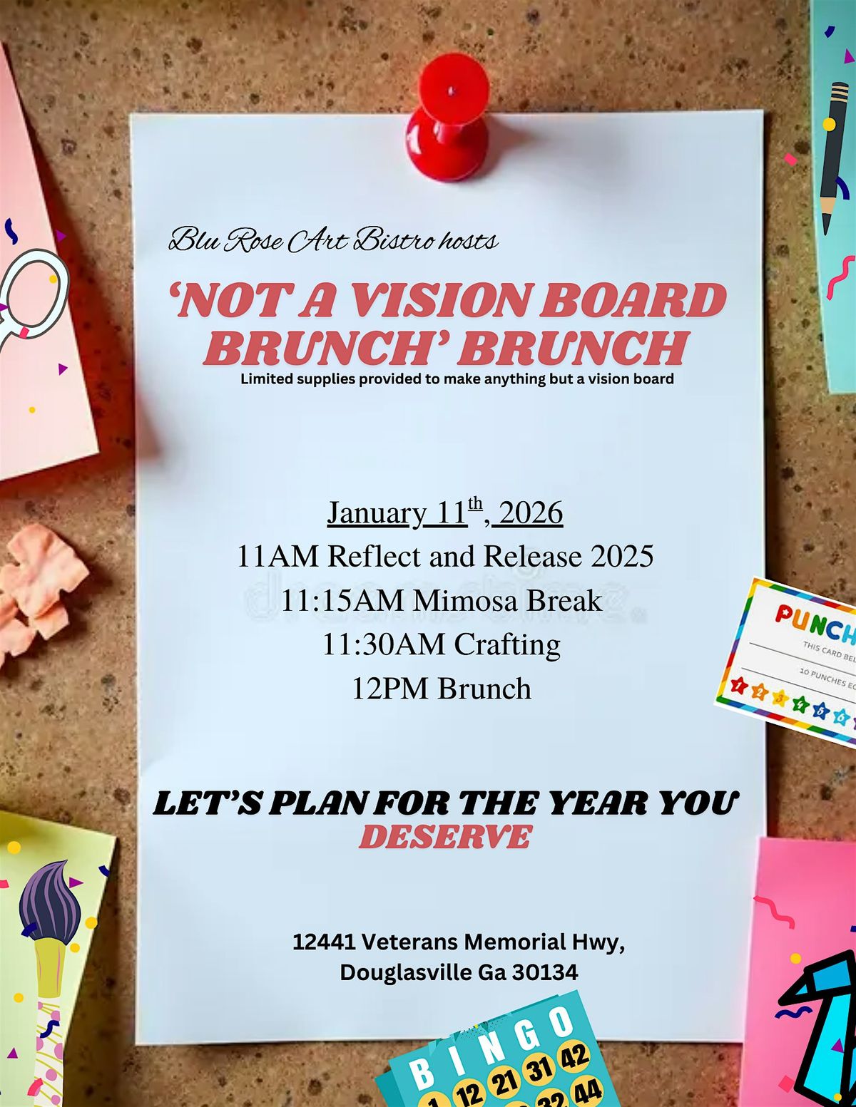 We are releasing 2025 and preparing for the 2026 we want! Only catch? We're making anything but a VISION BOARD. Join us for Mimosas as we go over other ways to help you have the year you deserve. Open to all who are ready to plan.