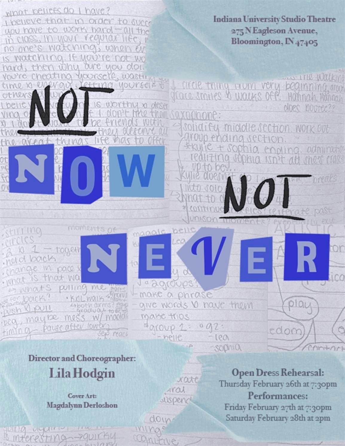 Introducing “Not Now, Not Never”, a new show directed and choreographed by IU contemporary dance senior, Lila Hodgin.About this Event