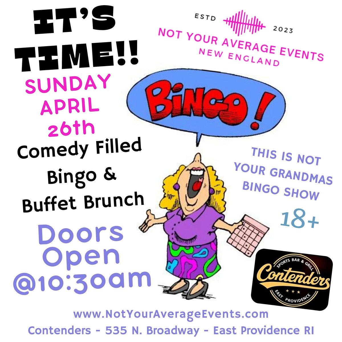 DJ KY and the Not Your Average Events Crew team up for this epic morning of #Comedy - #BINGO & More at Contenders