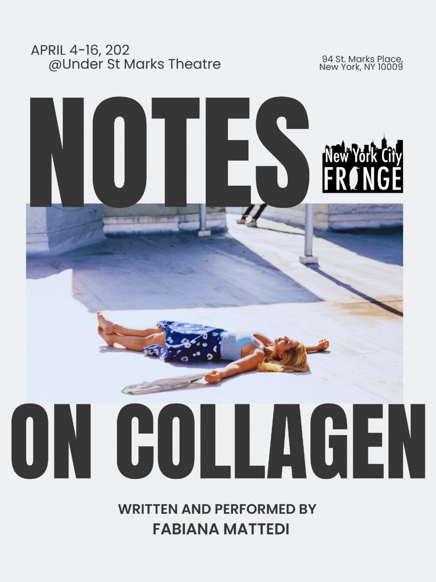 Written and performed by storyteller and actress Fabiana Mattedi, NOTES ON COLLAGEN is a comic and heartfelt reckoning with beauty, aging, and identity. In this one-woman show, Mattedi blends sharp humor with poignant self-reflection as she interrogates the paradoxes of beauty — its power and its poison, its promise and its price. From the pressures of “aging gracefully” to the subtle violence of societal expectations, NOTES ON COLLAGEN invites audiences to laugh, think, and confront the invisible forces that shape how we see ourselves — and each other. Poignant, biting, and unexpectedly funny, this one-woman show dares to ask: what happens when we stop trying to preserve ourselves and start claiming ourselves instead?