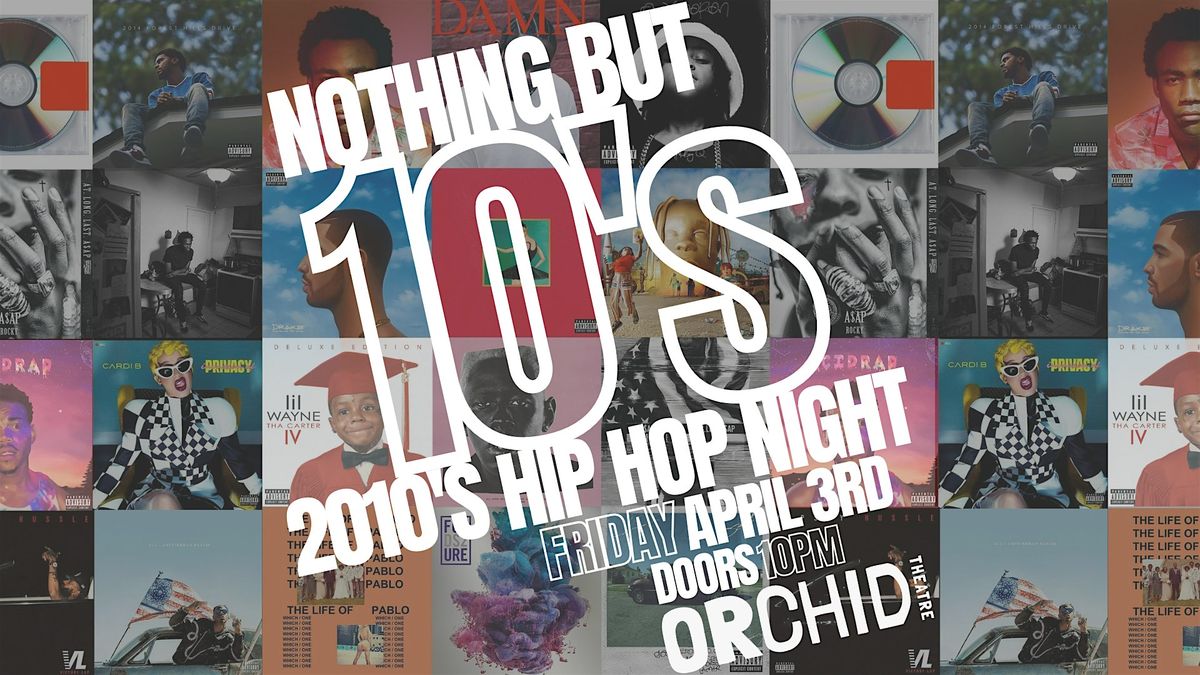 Join us Saturday, November 22nd at Orchid Theatre as we celebrate the decade that gave us classics from Kendrick Lamar, J. Cole, Travis Scott, A$AP Rocky, Childish Gambino, and so many more. From radio anthems to underground gems, itβs all going down on the dance floor. This is your chance to relive the decade that defined a generation of hip hop. Come ready to rap every word and dance till close!!