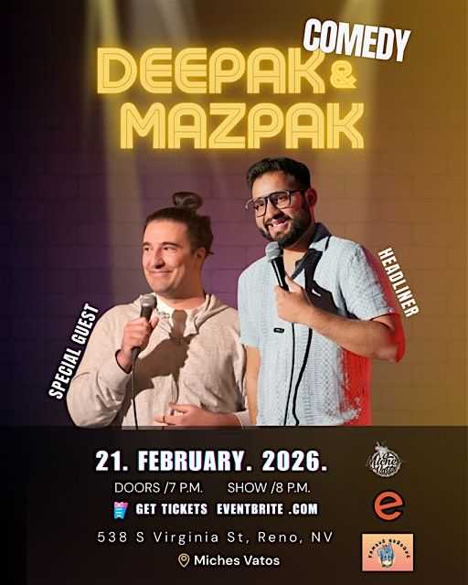 Let’s get a drift of some coastal comedy to Reno with Las Angeles own Deepak and San Diego’s Madak. Back to Reno for the second time!