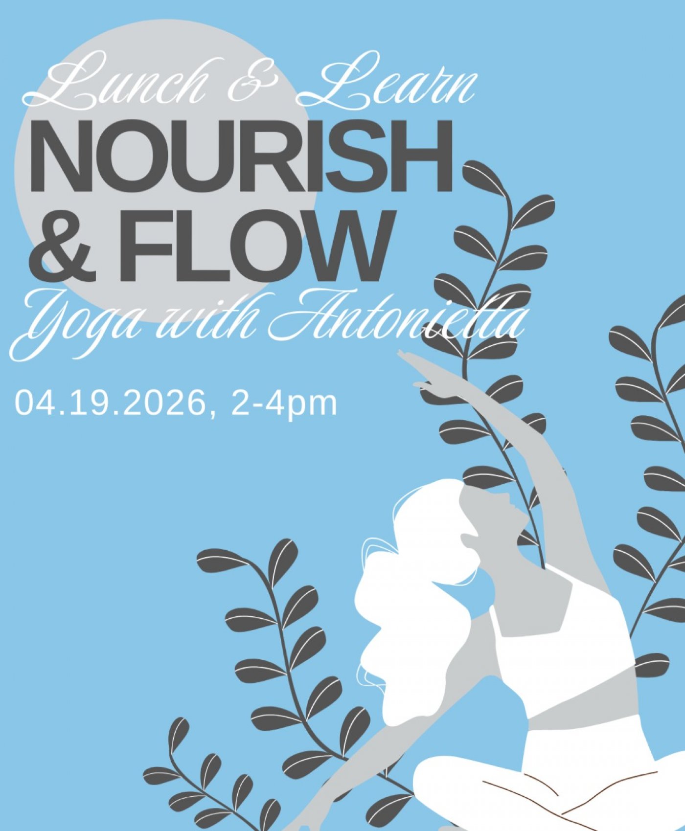 Join us for a relaxing yoga session at CasaVive Health Studio on April 19, 2026 at 2:00 PM. Whether you're a beginner or a pro, this class is all about finding your flow and nourishing your body and mind.