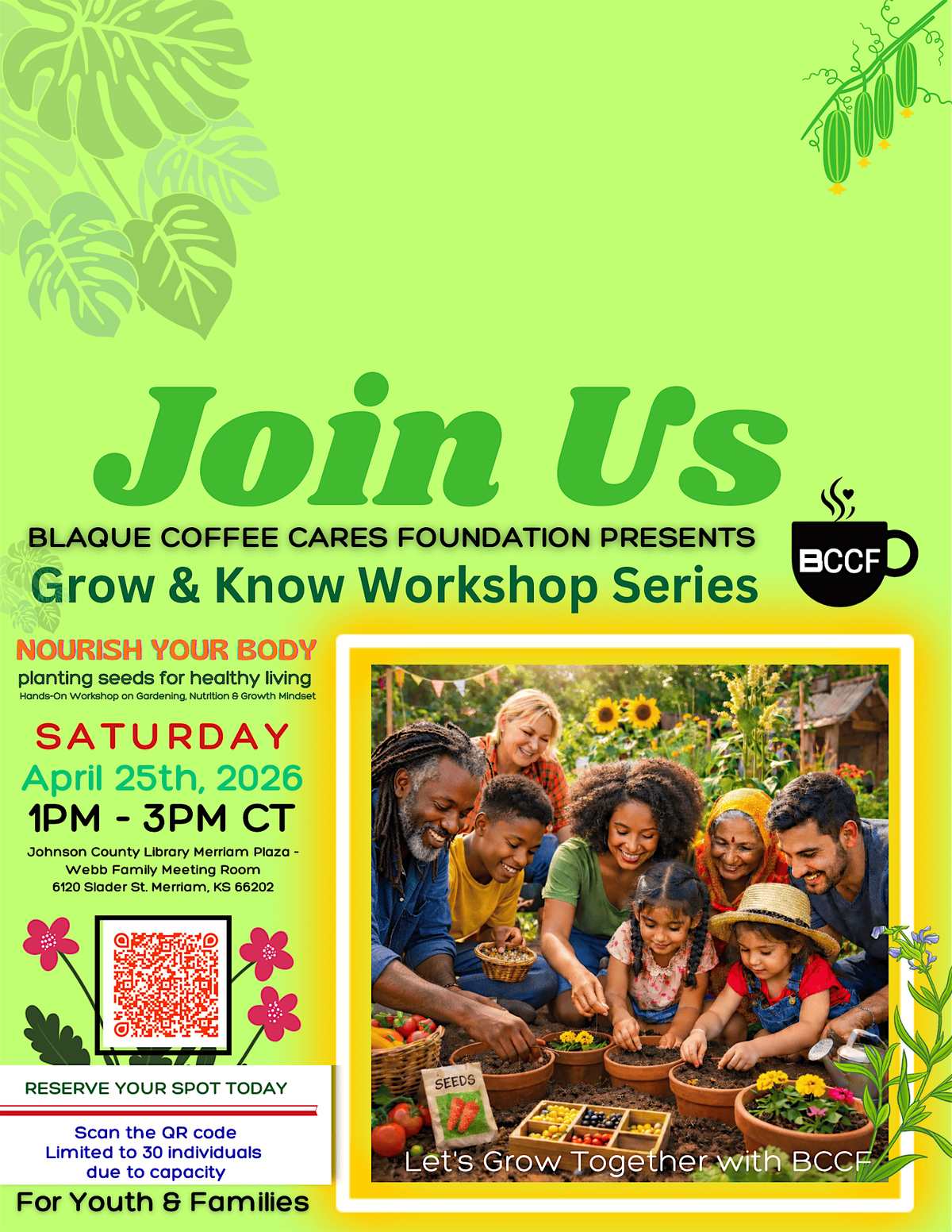Join Blaque Coffee Cares Foundation for an engaging, hands-on workshop designed to inspire youth and families to grow healthier habits from the inside out.