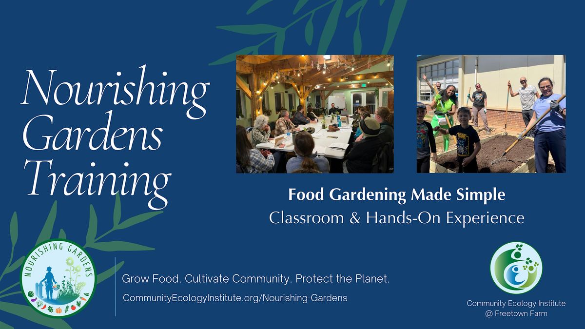 In just 5 weeks, you can learn everything you need to know to begin planning, building, planting, and maintaining a food garden. From planning to harvesting, in this training, you'll learn and experience all aspects of food gardening.