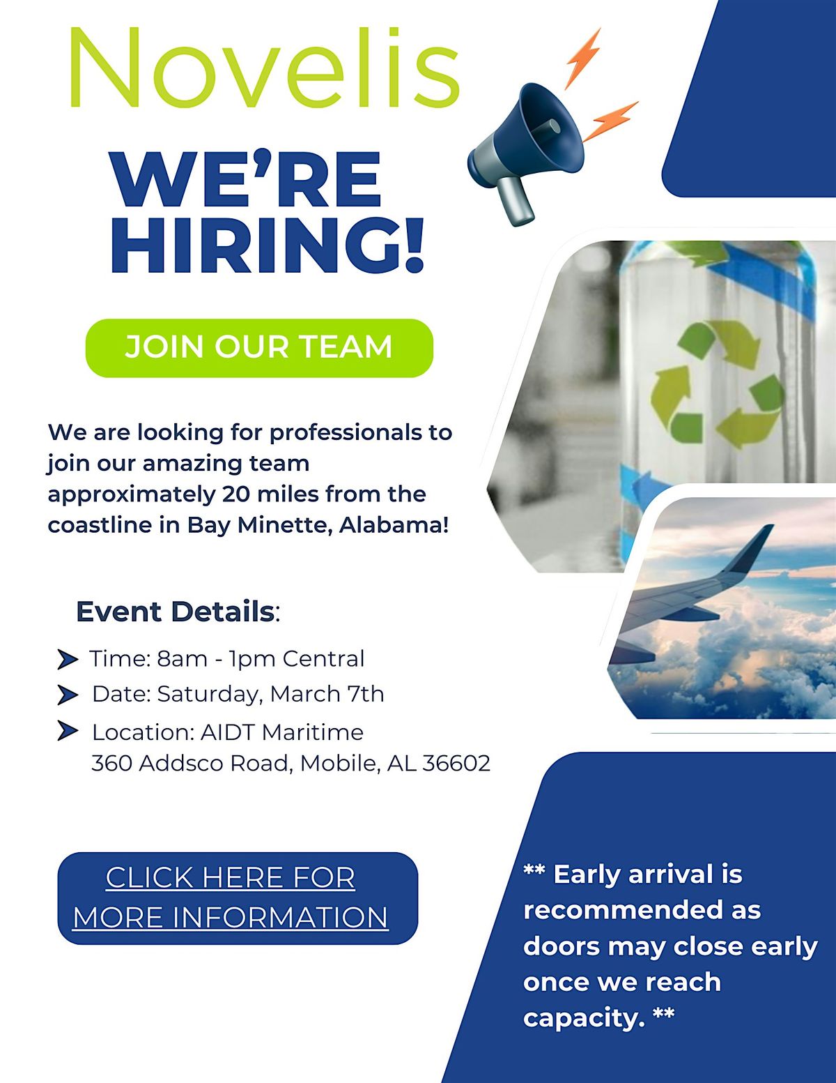 Novelis is hiring for our new Bay Minette facility!About this Event