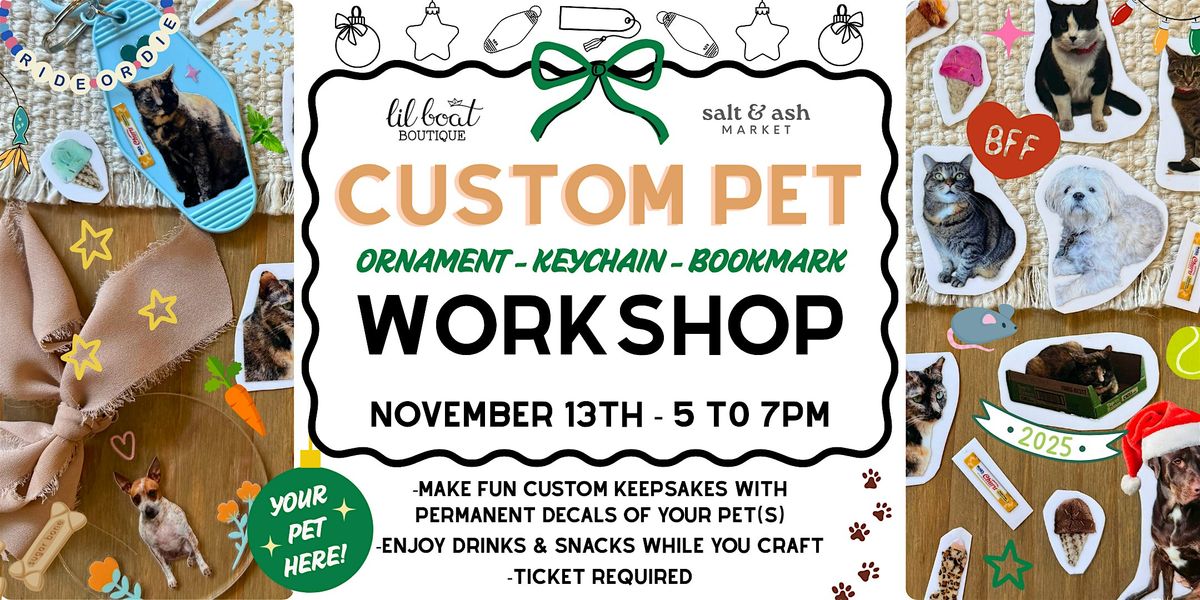 Welcome to the Custom Pet Keychain & Ornament Workshop happening at Salt & Ash Market on November 14th, 2025 at 5:00 PM EST!