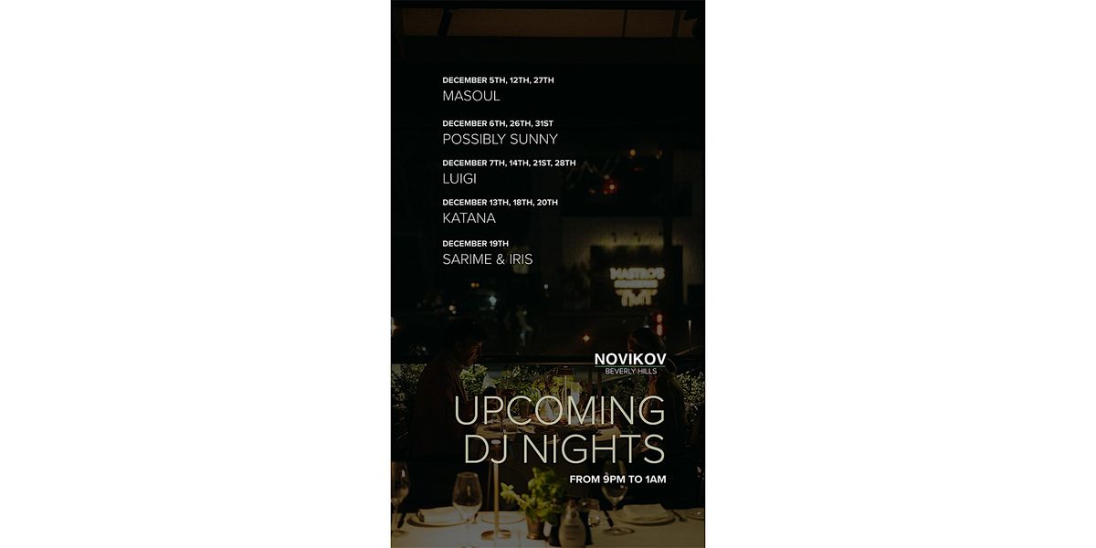 Join us for DJ sets every Thursday to Sunday at Novikov Beverly Hills.