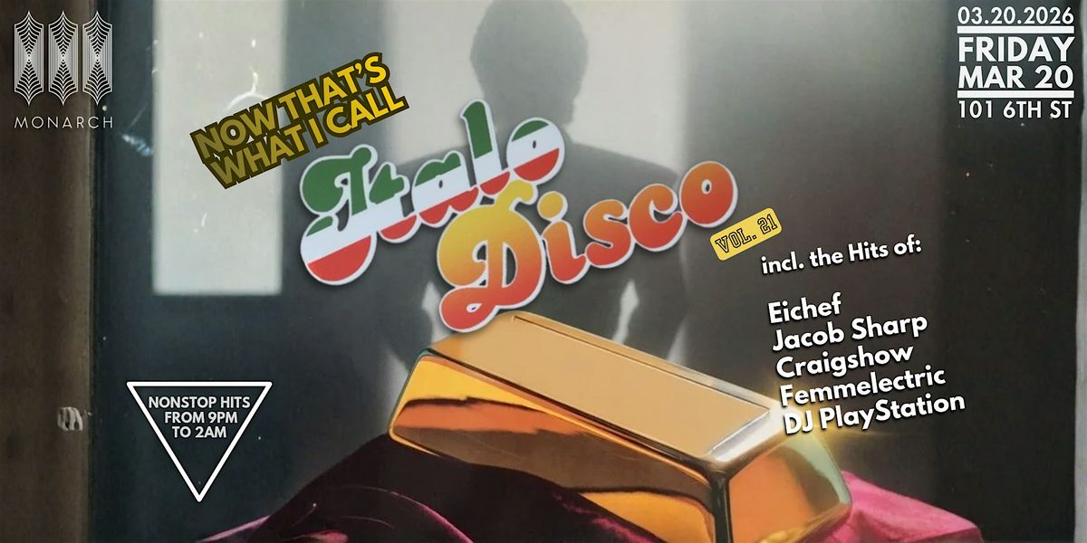 Now That's What I Call Italo-Disco is a local Bay-Area party created by DJ PlayStation out of his love for Italo-Disco; a playful side of the 80's Although short lived, Italo-Disco played a vital role in shaping electronic music and the club scene we all enjoy today. At this party we try to showcase the multifaceted genre in all its forms, from classic to contemporary, we got you covered!