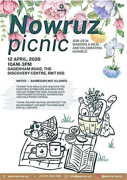 Join us for a Sunday picnic in the park for the 13th day of Nowruz! The fee is £5 per person, but free for children under 16 years old.