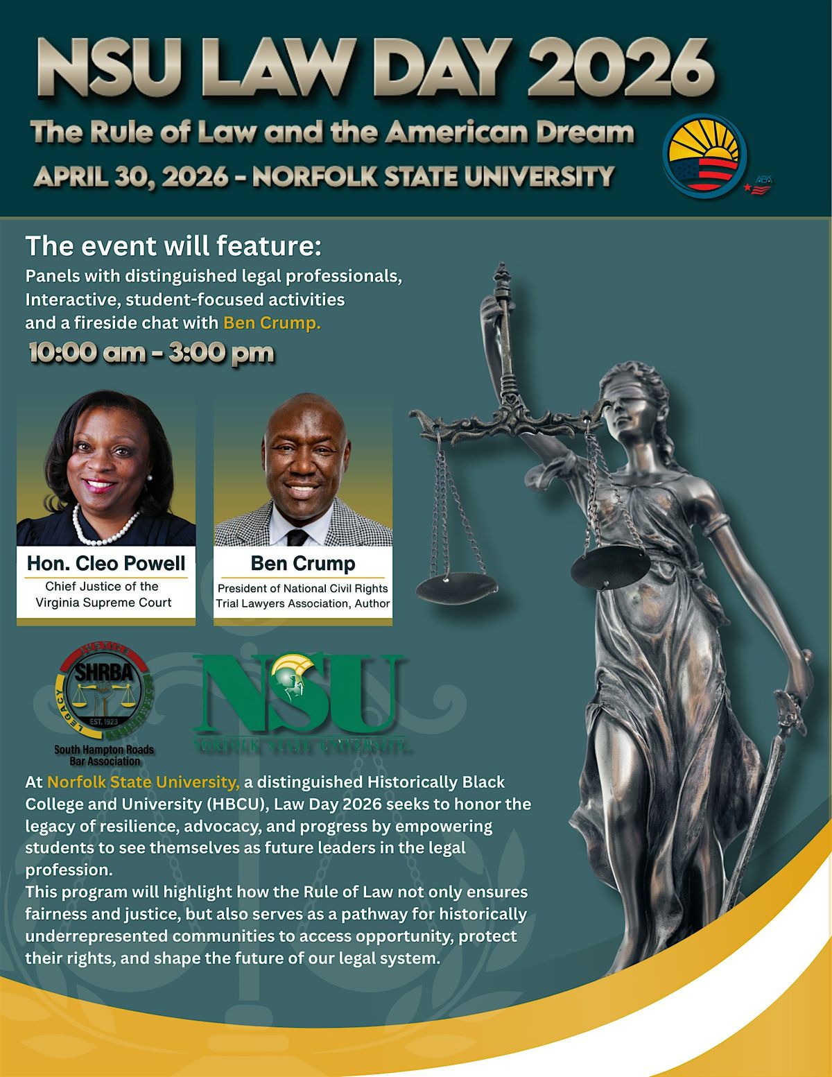At Norfolk State University, a distinguished Historically Black College and University (HBCU), Law Day 2026 seeks to honor the legacy of resilience, advocacy, and progress by empowering students to see themselves as future leaders in the legal profession.