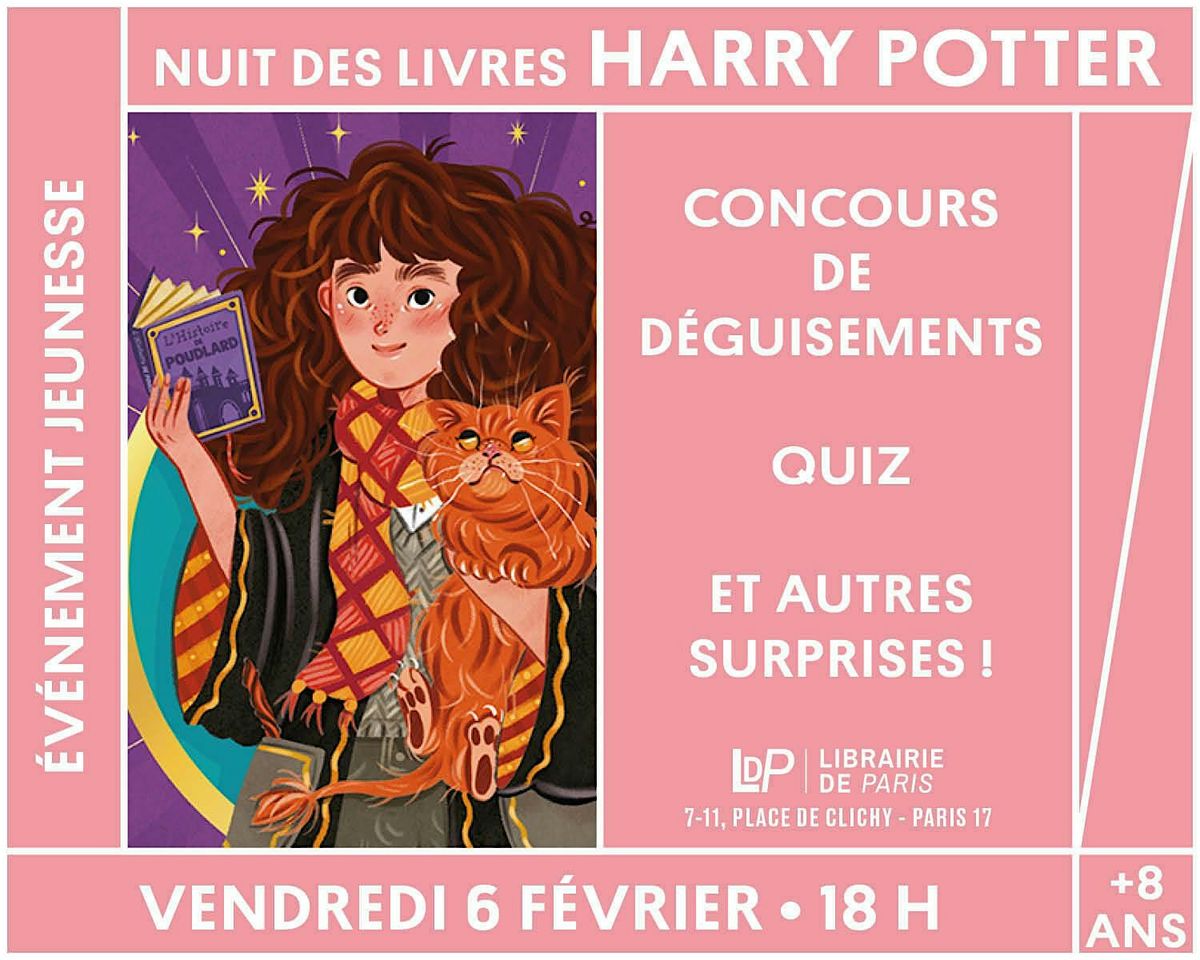 Pour vos enfants, dès 8 ans,Au programme de cette nuit HARRY POTTER : Grand concours de déguisements, répartition des maisons, Et bien-sûr, friandises magiques et cadeaux à gagner ! Code vestimentaire : robe de sorcier ou autre costume.