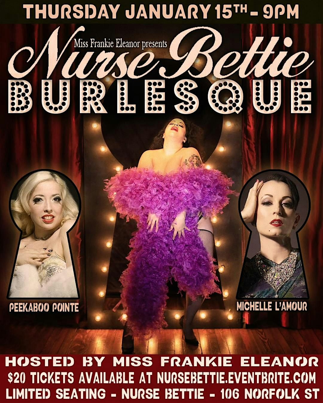 Miss Frankie Eleanor presents Nurse Bettie Burlesque! January 15th, 9PM. Featuring Peekaboo Pointe & Michelle L'Amour!About this Event