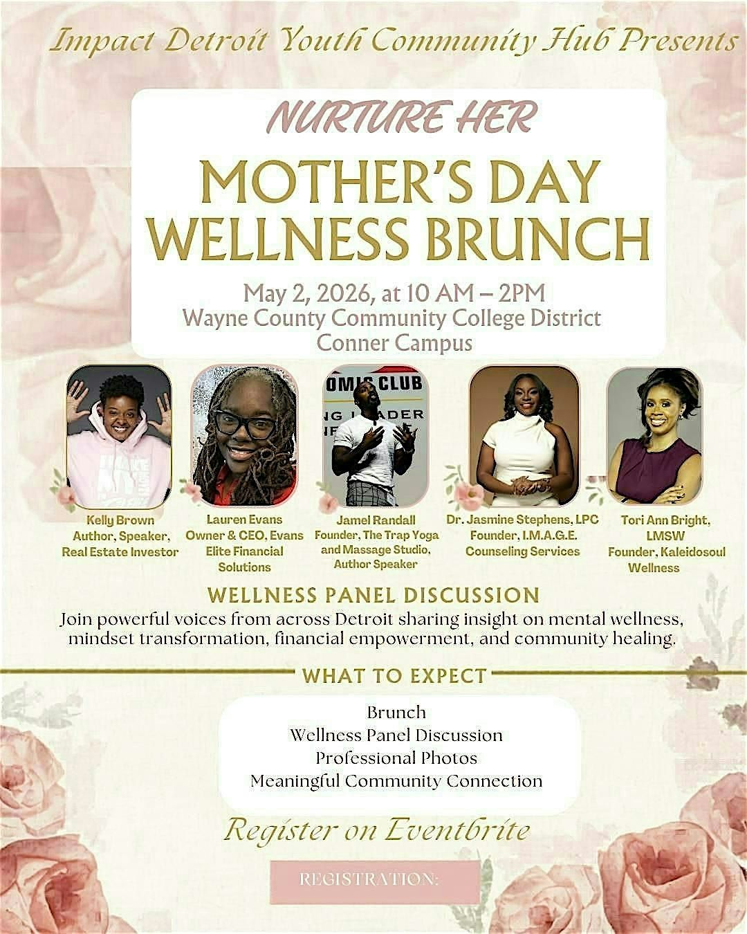 Impact Detroit Youth Community Hub proudly presents the First Annual Nurture Her Mother’s Day Wellness Brunch, a special fundraising event created to celebrate mothers, support wellness, and strengthen our community.