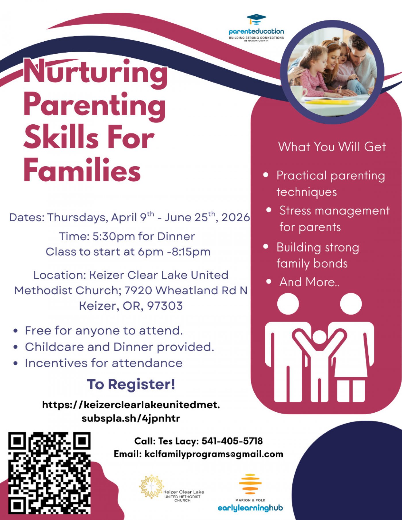 Nurturing Skills for Families is a 12-week, evidence-based program designed to strengthen parent-child relationships, foster positive brain development, and build empathy. Classes are ideal for families with children prenatal to age 19, covering topics like developmental milestones, nurturing routines, and positive discipline. You will also work on empowerment and self-worth for your child and meeting your needs as well as your child's.