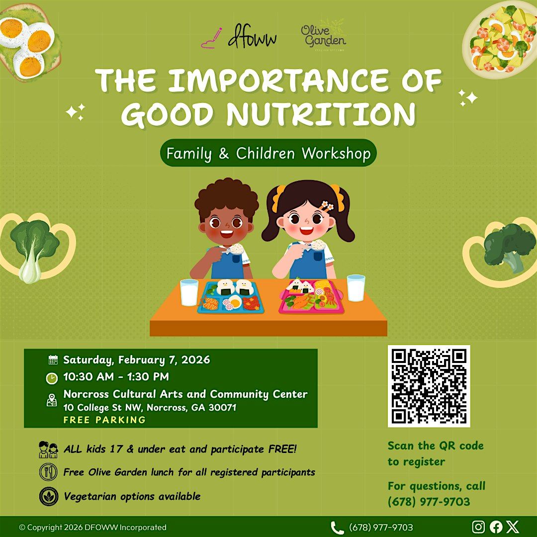 We invite you and your family to join DFOWW Incorporated for a fun, informative, and family-friendly event:The Importance of Good Nutrition – Family & Children WorkshopGood nutrition plays a vital role in keeping our bodies and minds healthy.