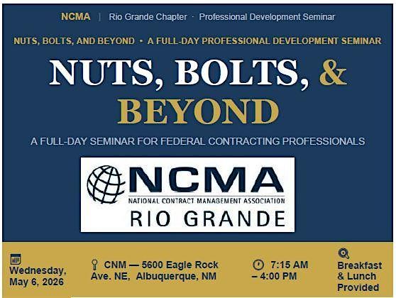 Join your NCMA colleagues for a full day of expert-led sessions on the topics that matter most right now — AI-powered acquisition tools, GovCon business value, CMMC 2.0 compliance, and your NCMA certification journey. Practical. Interactive. Built for today's federal contracting professional.