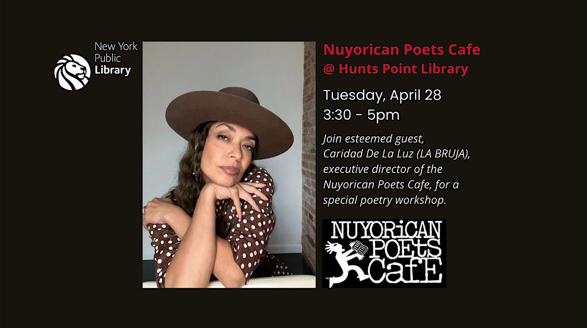 The Nuyorican Workshop will include some history of the Nuyorican poetry movement and the Nuyorican Poets Cafe, several writing prompts, a performance by the poet/Teaching Artist, and time for the entire group to share, open-mic style.