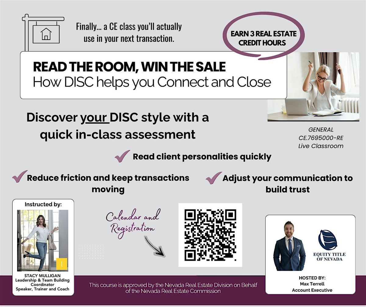 Join us in person for an engaging session where you'll learn to read the room and win more sales in real estate.