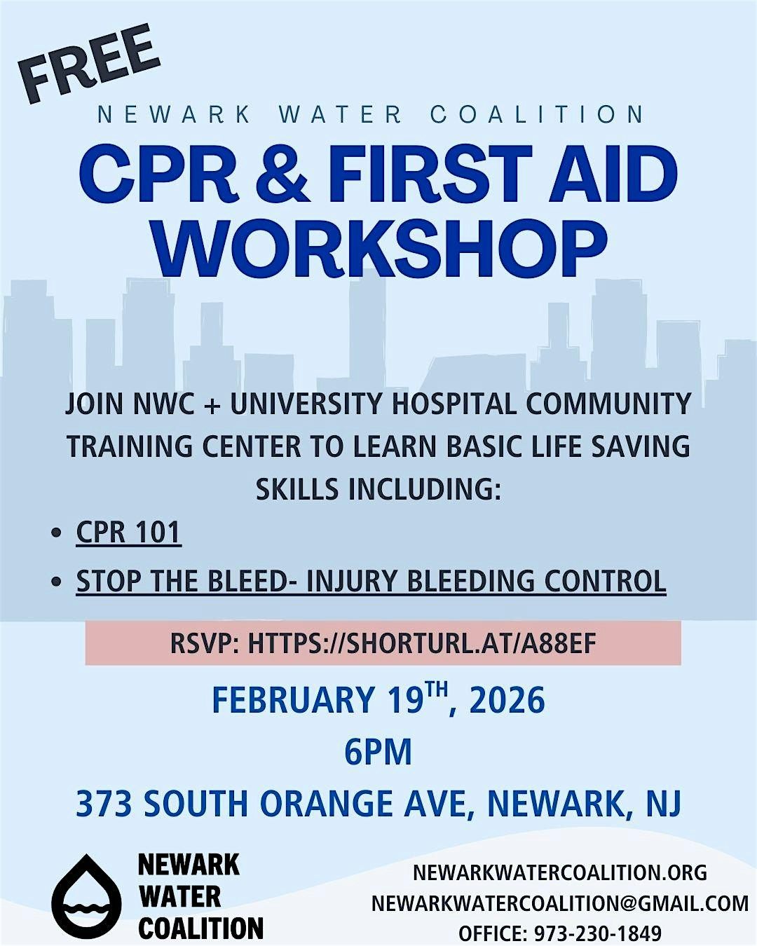 Join the Newark Water Coalition and University Hospital-Community Training Center to learn basic life saving skills.