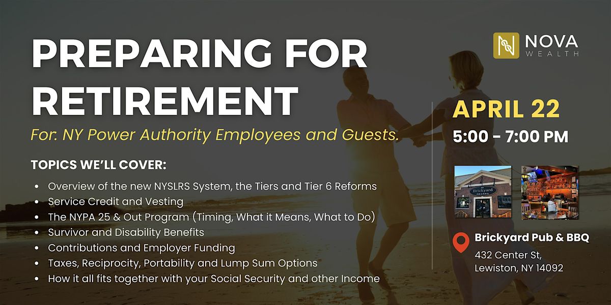 For our NY Power Authority Community. April 22nd we are hosting a private event to help you prepare for and navigate your retirement.About this Event