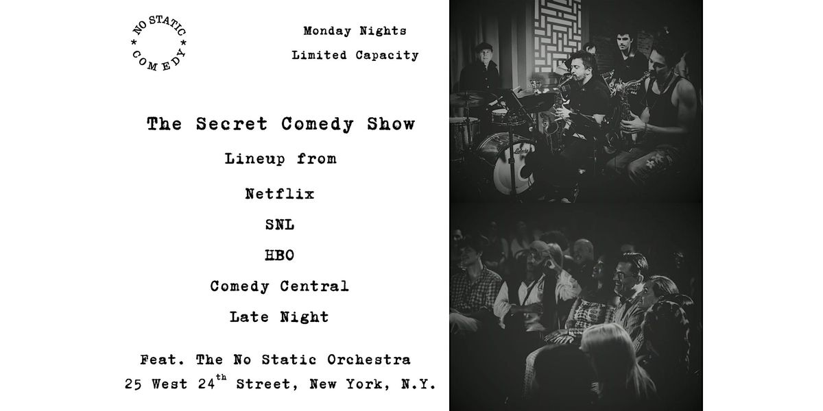 An exclusive NYC comedy experience. Surprise comedians (Netflix, SNL, HBO, & more) & live music ft. The No Static Orchestra.
