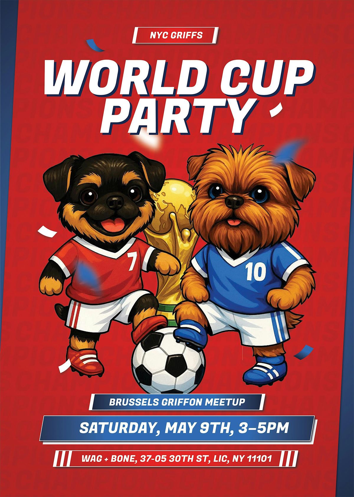 Spring is in full bloom, and we’re kicking things off with our NYC Griffs World Cup Party — a soccer-themed Brussels Griffon meetup celebrating community, style, and serious Griff attitude.