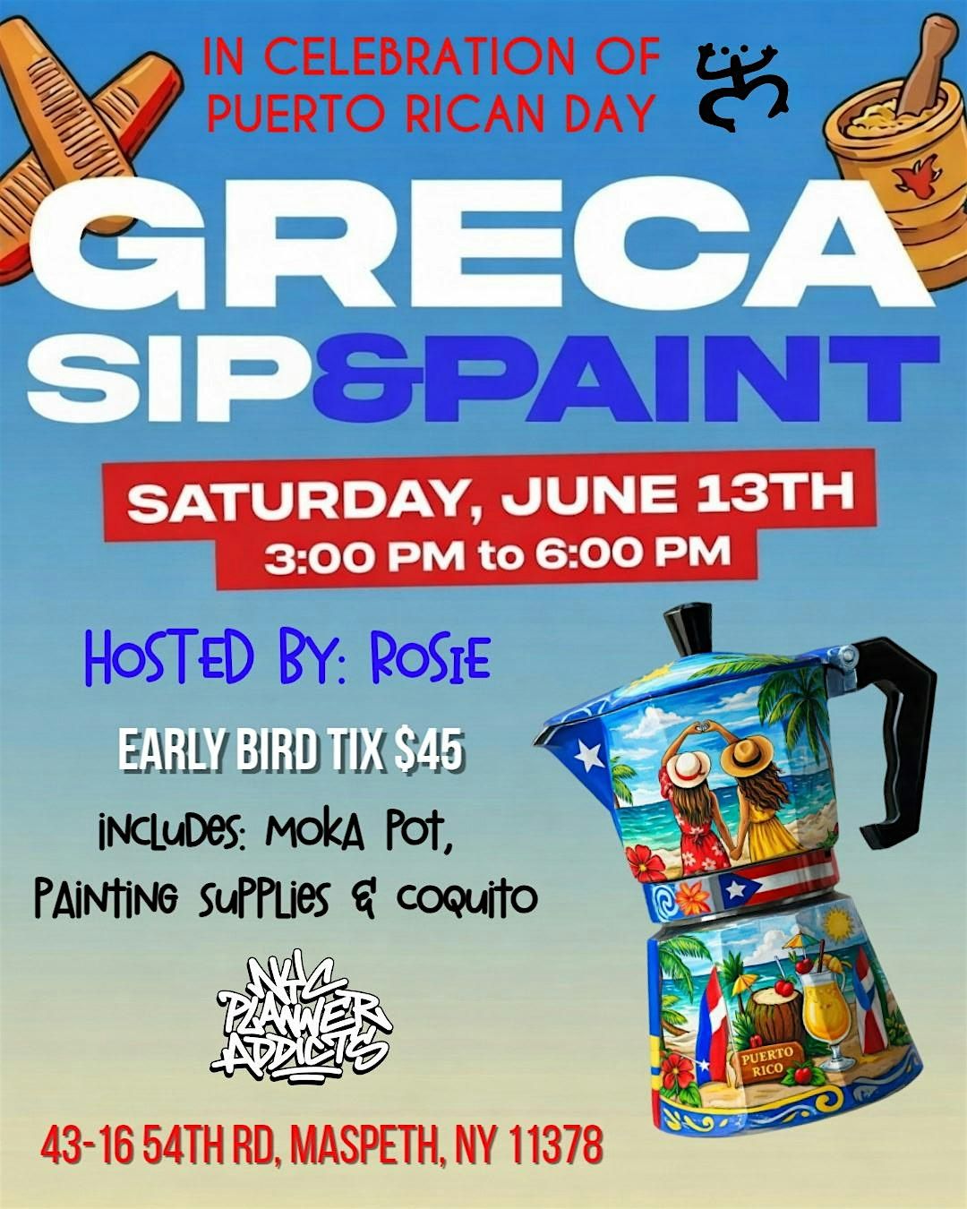 Join us for a one-of-a-kind Sip & Paint experience where youβll design your very own moka (greca) potβinfused with island vibes, cafecito culture, and Boricua pride βπ₯