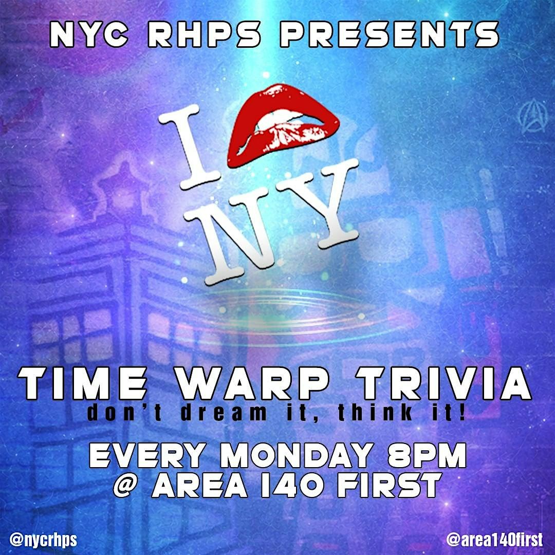 Join NYCRHPS for Time Warp Trivia, a weekly, slightly unconventional spin on NYC bar trivia, every Monday night at Area 140 First in the East Village.