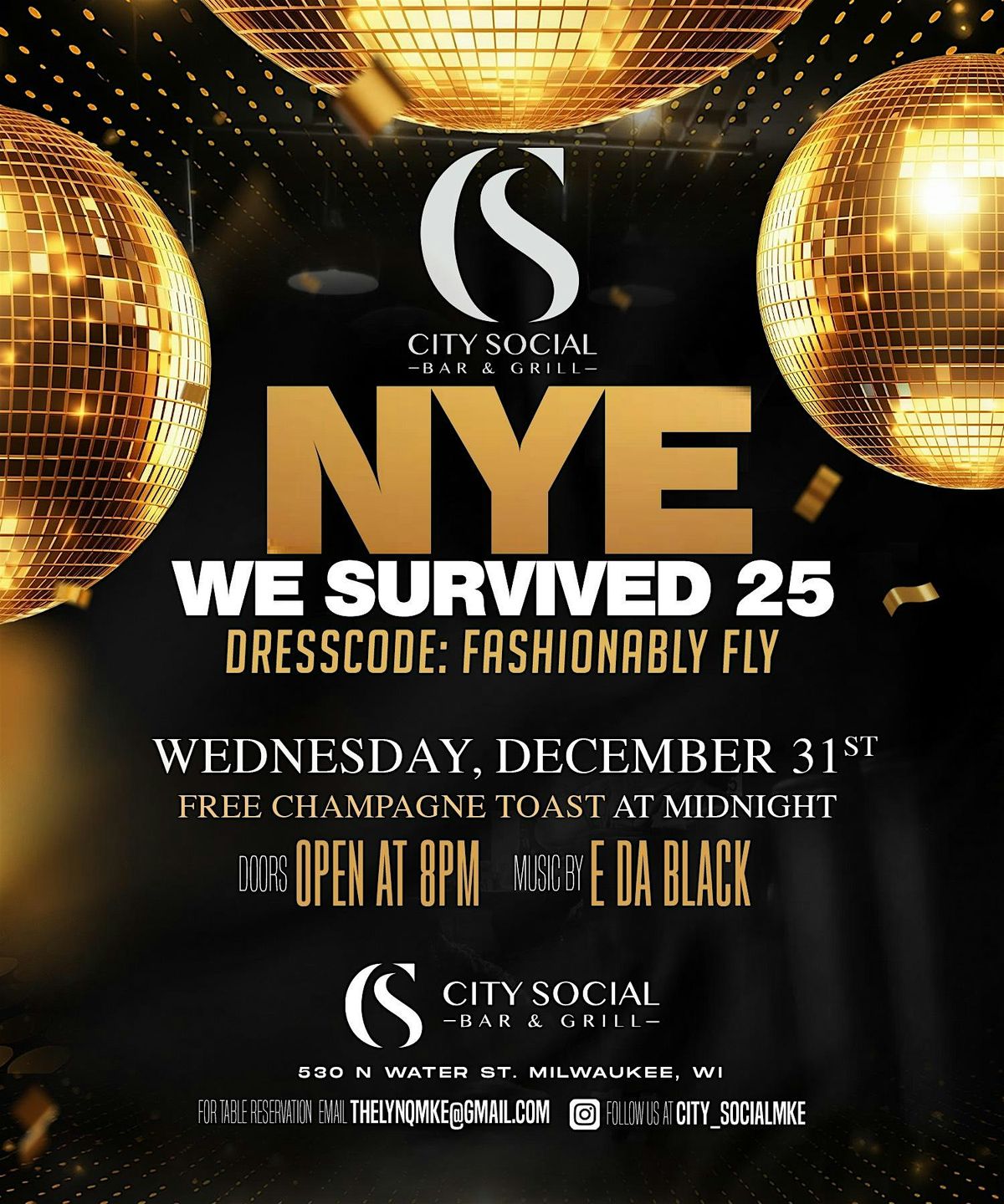 Get ready to celebrate New Year's Eve 2026 like never before! Join us in person at City Social for WE survived 25 — a night full of fun, laughter, and unforgettable memories. Let's raise a glass to say goodbye to 2025 and welcome the new year with good vibes and great company.