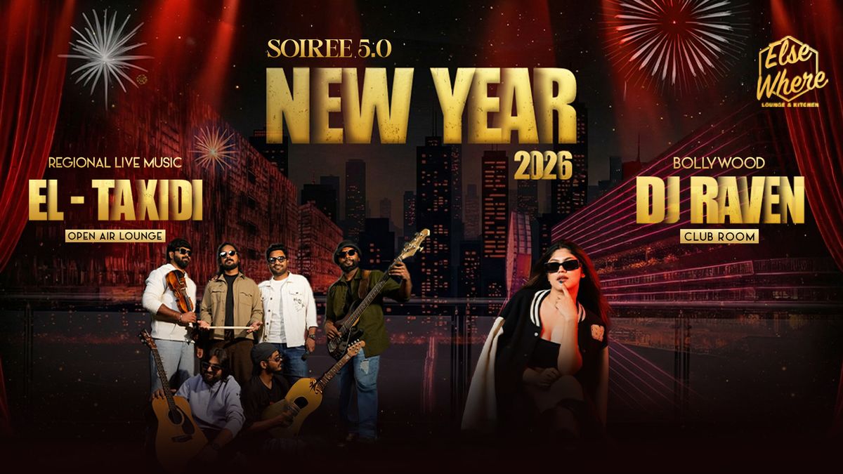 SOIRÉE 5.0 NEW YEAR 2026 ELSEWHERE LOUNGE AND KITCHEN This New Year’s Eve, step into a celebration that unfolds in layers.Two distinct spaces. Two powerful musical journeys.One unforgettable night that carries you into 2026, the Elsewhere way.Open Air Lounge table booking Feel the pulse as EL TAXDI sets the tone with raw, vibrant regional live music—powerful vocals, electric energy, and an atmosphere that moves you.Club Room As the night deepens, DJ Raven takes over with high-energy Bollywood beats, keeping the floor alive well beyond the countdown.From the first note to the final moment, every detail comes together to create something immersive, dynamic, and truly unforgettable.
