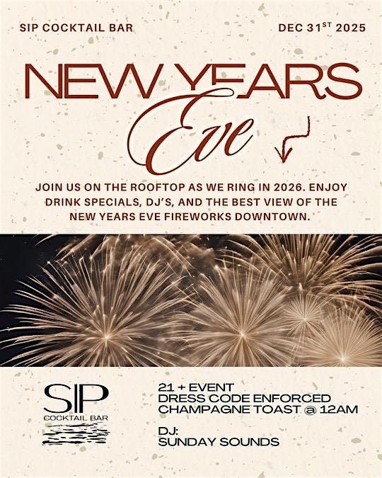 Ring in 2026 with SIP’s first-ever New Year’s Eve event, a sophisticated, high-energy celebration crafted for our guests!About this Event