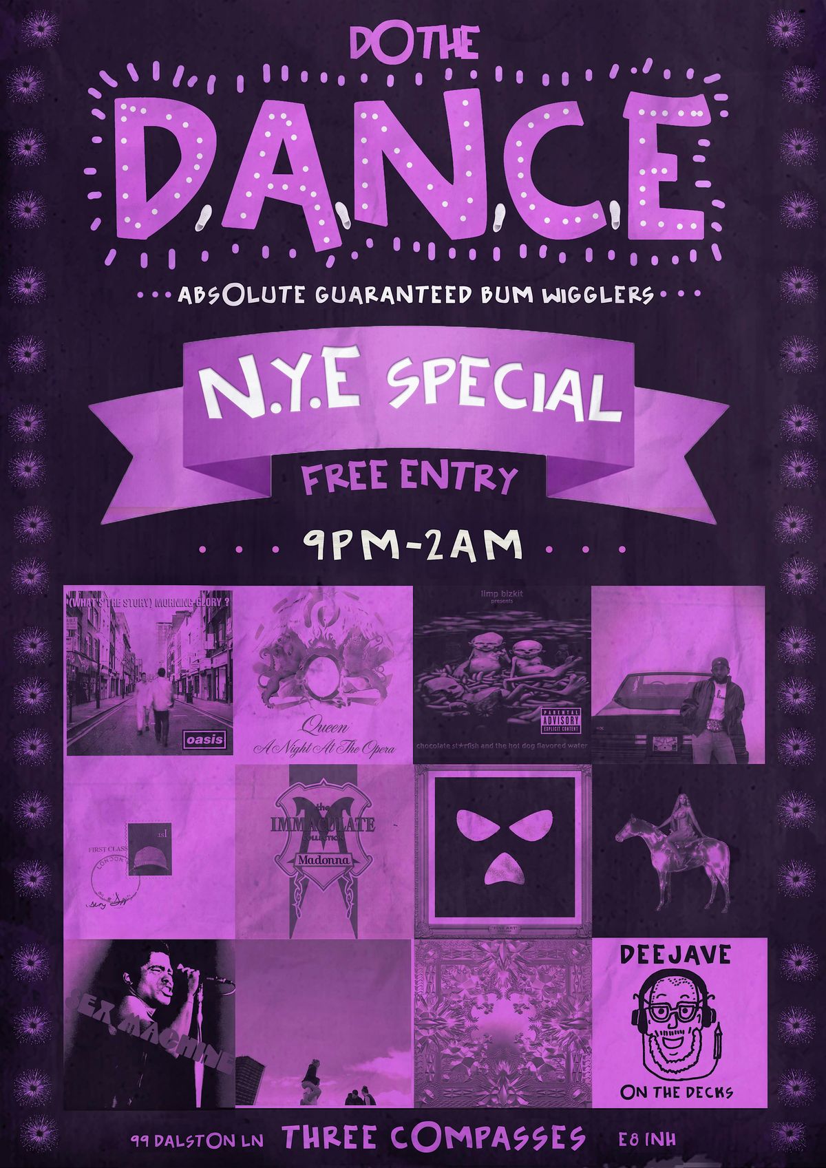 Join us for a special NYE edition of D.A.N.C.E, with Dee Jave spinning songs that Boogie, Bounce, Jump, Dance and Shake from Arctic Monkeys, The Beastie Boys, Daft Punk, David Bowie, James Brown, Madonna and MORE.Bottle of Prosecco for bookings of 15+, so book your party in now.