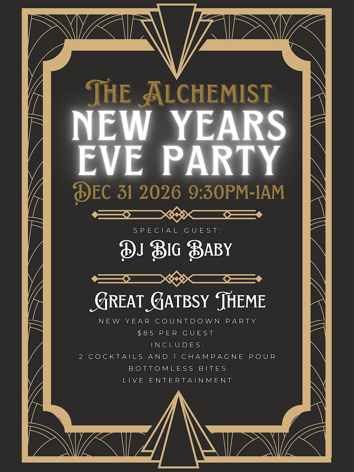 For $85 per person, indulge in two expertly handcrafted cocktails, plus a celebratory champagne toast at midnight. Enjoy bottomless bites including our favorite menu staples, along with a dessert board for all of our sweeties. Alchemists' full Cocktail menu will be available for purchase, along with table-side bottles of champagne. Exclusive event with a maximum capacity of 75 attendees. Be captivated by live entertainment as the DJ spins all night, and dance the night away. This isn't just a party- it's an experience! Book on our Website**