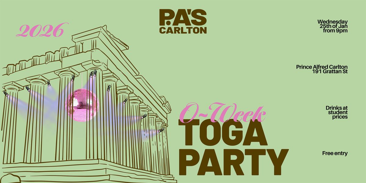 Melbourne Uni's most iconic O-Week party is here on Wednesday 25th of February 2026 with a TOGA PARTY!!