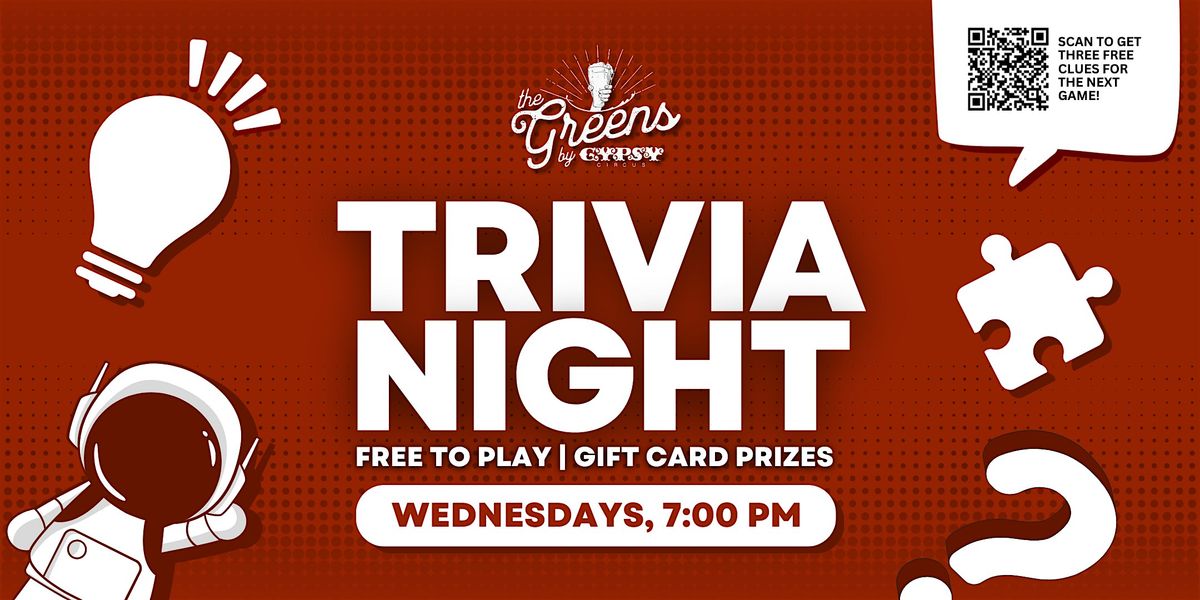 Join us for free live trivia every Wednesday at 7pm at The Greens in Oak Ridge, TN! Free to play, and top teams win gift card prizes!