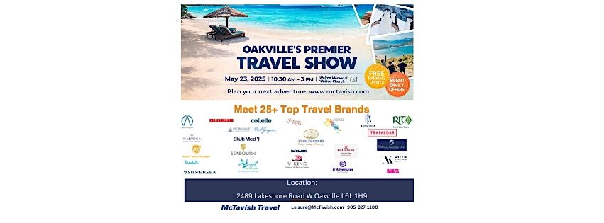 Get ready to explore the world without leaving town! Join us in person for a fun and exciting day filled with travel inspiration, expert tips, and amazing deals. Whether you're a seasoned globetrotter or planning your first getaway, this is the spot to catch all things travel. Meet passionate travellers, discover hidden gems, and fuel your imagination. Don't miss out on Oakville's must-attend travel event!