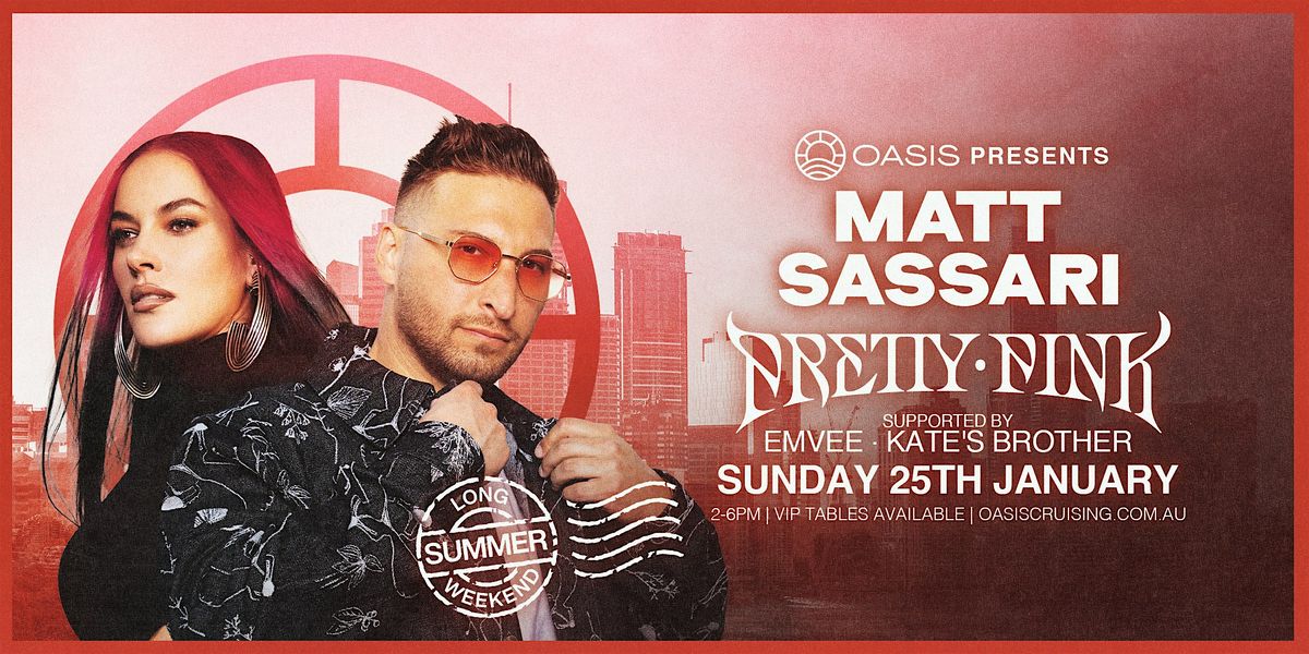 Join us this January Long Weekend at Oasis Brisbane for an unforgettable Sunday cruise featuring Matt Sassari and Pretty Pink. Get ready for cutting-edge house and techno as Matt Sassari brings his high-energy signature sound, while Pretty Pink delivers her melodic, feel-good grooves that have captivated dance floors worldwide. Set against the stunning backdrop of Oasis Brisbane, this special event blends world-class music, vibrant atmosphere, and premium summer vibes. Gather your crew, soak up the sunshine, and dance into the sunset—this is one summer party you don’t want to miss!
