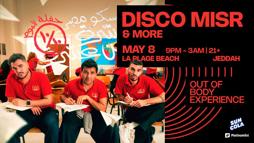 On 8 May 2026, La Plage, Jeddah transforms into a high-energy dancefloor by the sea. Experience DISCO MISR live, delivering their signature sound classic Egyptian hits reimagined through disco basslines, funk-inspired rhythms, and modern electronic production, built for nonstop movement.