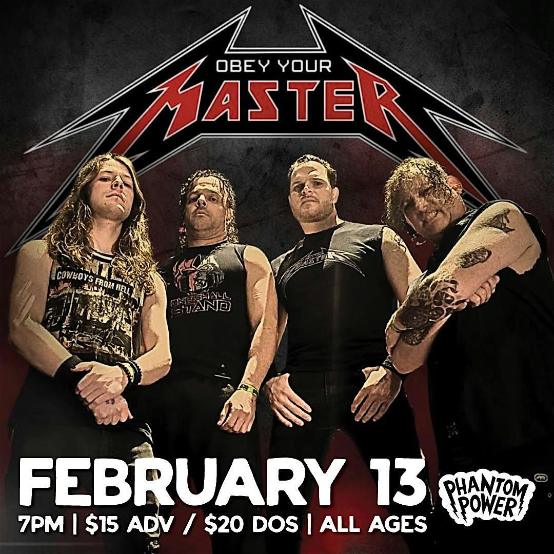 Based out of the tri-state area (NY, NJ, PA), Obey Your Master is glued together by four Metallica juggernauts with one thing in mind; to bring the audience the most authentic face melting metallica tribute show as possible! OYM plays tracks from all albums; from the begining of time, to present day hits. This concert will have any fan (young or old) speechless! All extremely impressive musicians forming the most indistinguishable Metallica tribute band in the world!