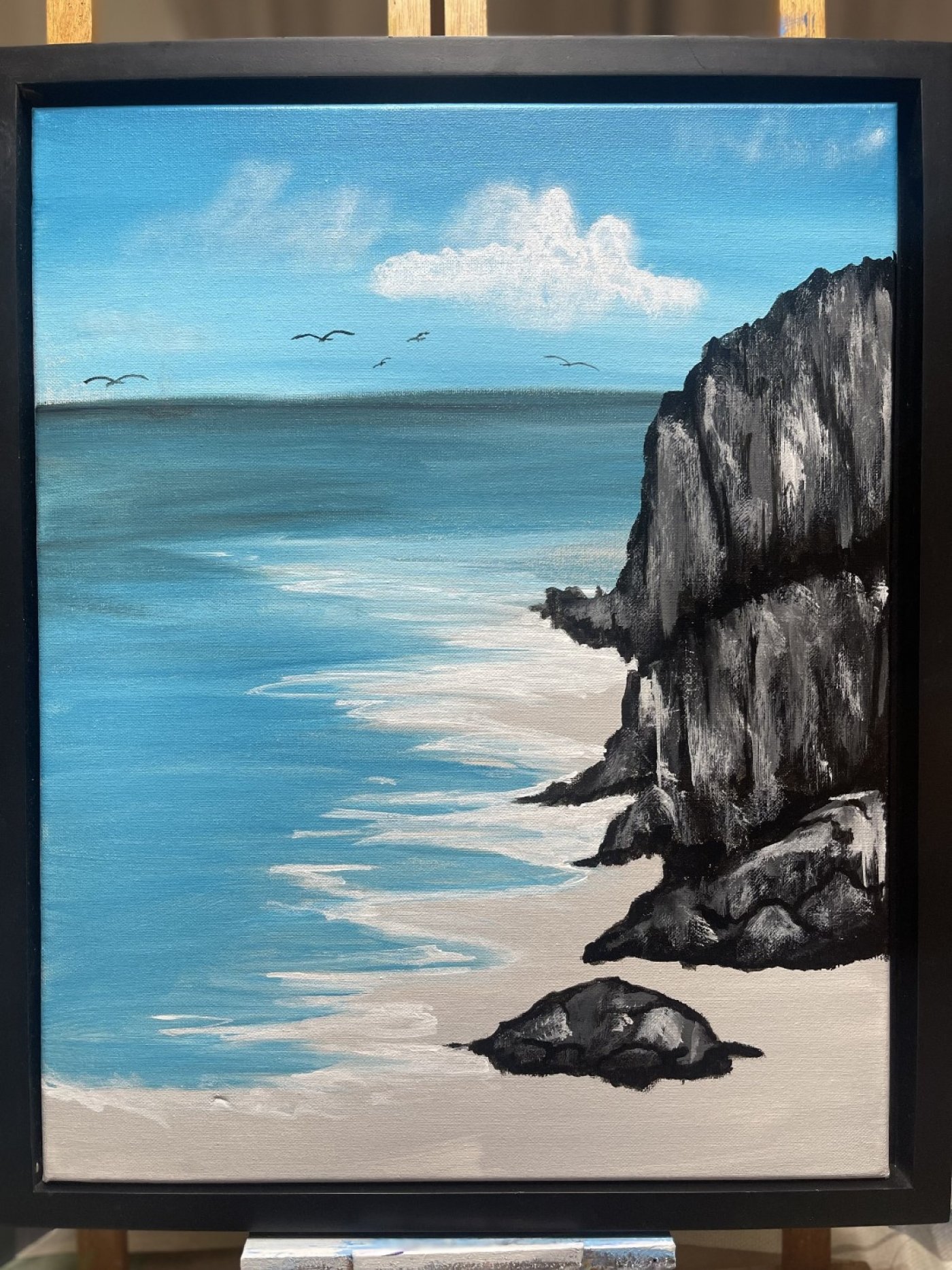Ocean Cliffs acrylic painting on a 16x20 canvas.