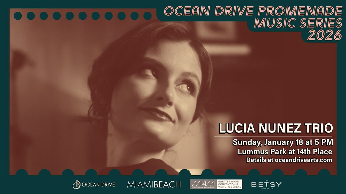 Join us on Ocean Drive on January 18th for a performance featuring Lucia Nunez Trio as part of the Ocean Drive Promenade Music Series, a free, weekly concert series presented by the Ocean Drive Association. Pack a picnic blanket or lawn chair to stake out your seat on the lawn. Showtime is at 5:00 PM.