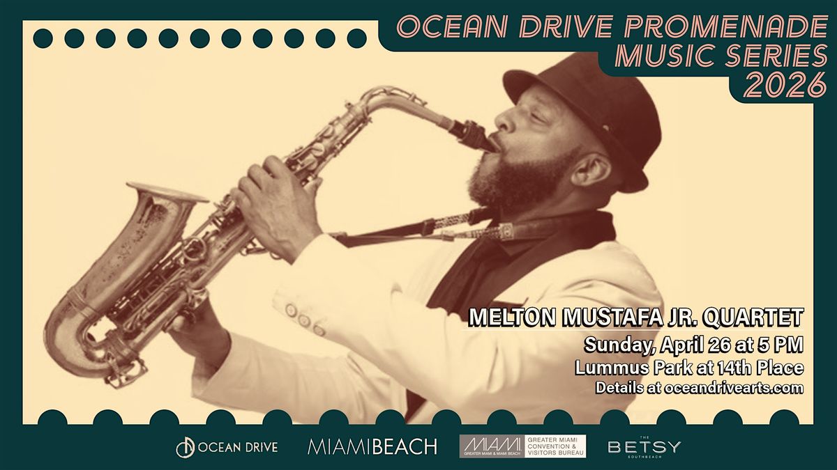 Join us on Ocean Drive on April 26th for a performance from Melton Mustafa Jr. Quartet as part of the Ocean Drive Promenade Music Series, a free, weekly concert series presented by the Ocean Drive Association. Pack a picnic blanket or lawn chair to stake out your seat on the lawn. Showtime is at 5:00 PM.