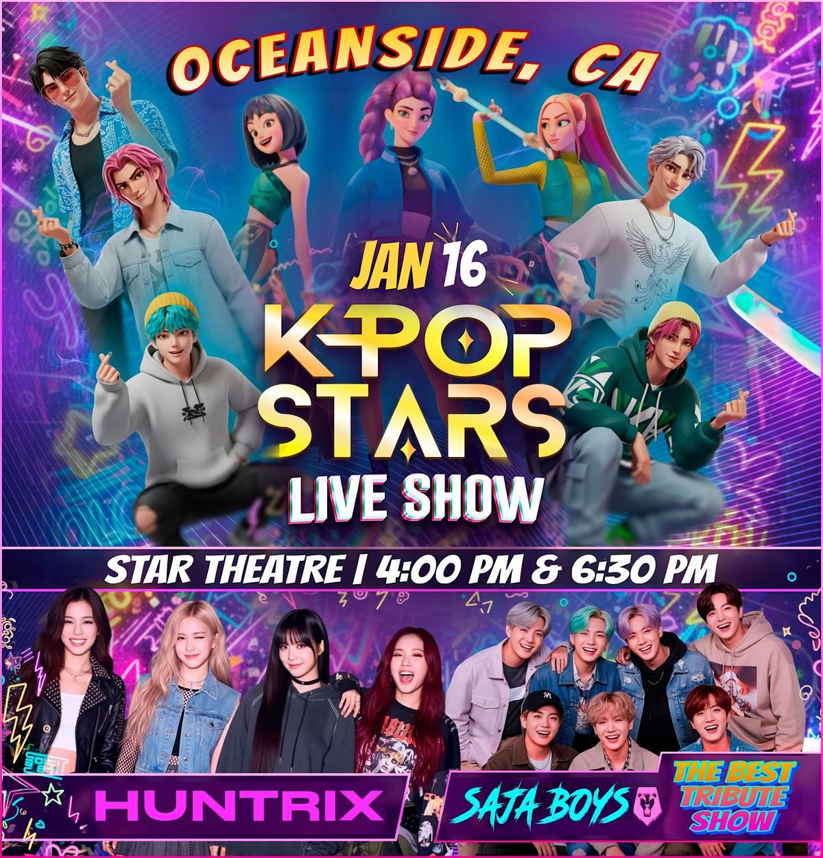 K-POP STARS LIVE SHOW is here to light up the stage with spectacular tributes to your favorite groups: Huntrix Saja Boys BLACKPINK BTS Feel the thrill of electrifying choreographies, stunning outfits, and all the energy that makes K-Pop shine — live on stage! Sing, dance, and vibe to the hits you love as if you were at a real concert in Korea!