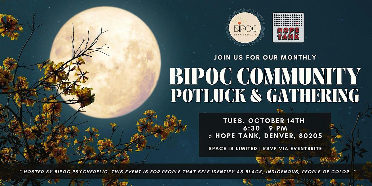 It's officially fall, a favorite season for many! Come join BIPOC Pyschedelic at our monthly gathering and community potluck on Tuesday, October 1th, 2025 in Denver 80205 from 6:30pm to 9:00 PM.