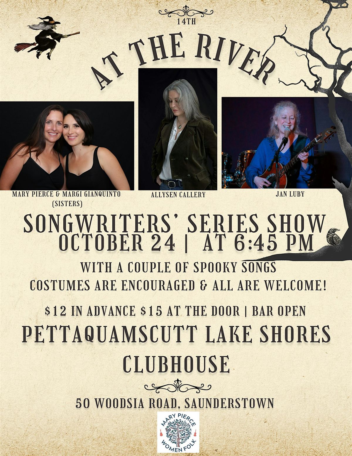 Come down to Pettaquamscutt Lake Shores Clubhouse for our"spooky" At the River Songwriters' Series show on Thursday, Oct 24th! We are so excited to feature the talented and accomplished Allysen Callery, Jan Luby, Mary Pierce and Margi Gianquinto in this fantastic Monthly series At the River.