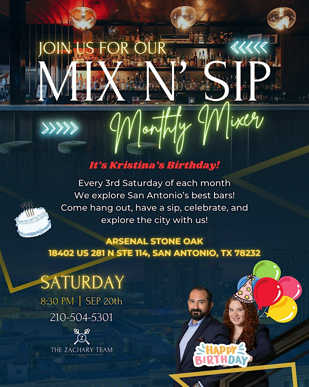 Mix N' Sip is all about connecting, relaxing, and enjoying San Antonio’s nightlife. We change up the venue each month, so there’s always something new to explore. Make sure to RSVP, grab a friend, and come see what all the buzz is about. Your next favorite spot is just a sip away! 🍹🎉