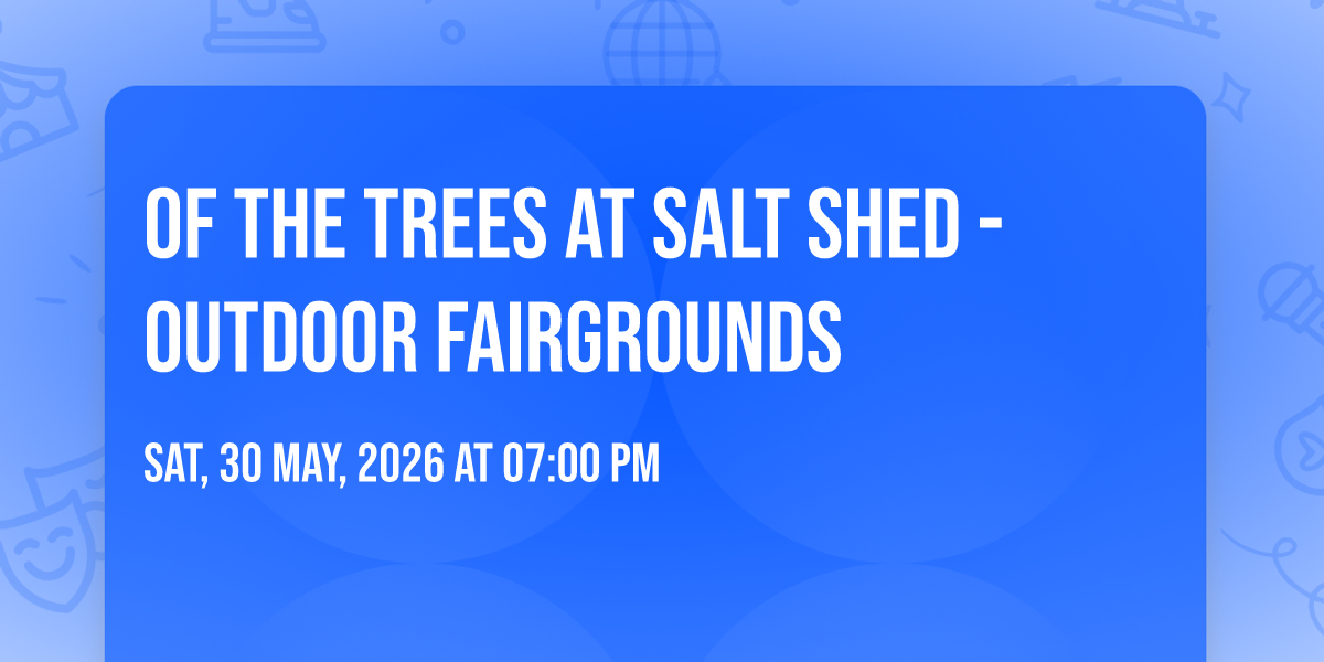 🌟 Be part of history at Of the Trees at Salt Shed - Outdoor Fairgrounds, an extraordinary gathering that will captivate your imagination! 🏛️ The prestigious Salt Shed - Outdoor Fairgrounds in Chicago, IL sets the stage for an unforgettable experience on May 30th, 2026 at 07:00 PM. ✨ They are bringing together the finest elements of entertainment and innovation to create moments that will take your breath away. From the moment you arrive, you'll be immersed in an atmosphere of wonder and excitement. 🎯 This carefully planned event ensures every guest experiences something truly special. 🎊 Early booking is recommended for this must-attend event of the season!